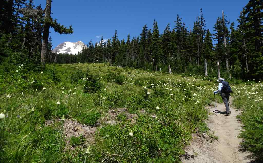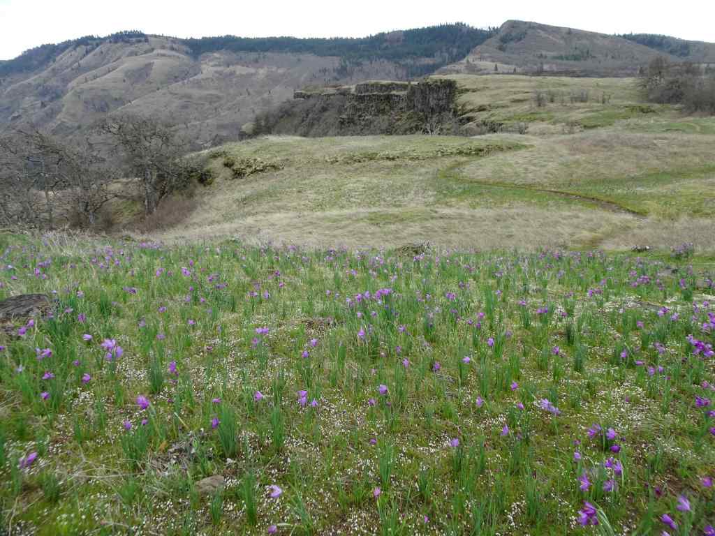 March – Grass Widows at Rowena Crest, ORApril – Green meadows with Death Camas, Shooting Stars and many other wildflowers at Catherine Creek, WA…these meadows would burn in July….April – First walk through the new hiker/biker tunnels at Mitchell Point, ORMay – Return to that one trail between Multnomah and Wahkeena Creeks, ORMay – Tall larkspur at Cape Horn, WAJune – Avalanche lilies on the Ant Hill Trail, Mt Hood, ORJuly – Bear Grass near Picnic Rock, Mt Hood, ORJuly – Bird Creek Meadows, Mt Adams, WAJuly – Elliot Moraine and Timberline Trail High Point, Mt Hood, ORDecember – First return after the fires to Catherine Creek, WA