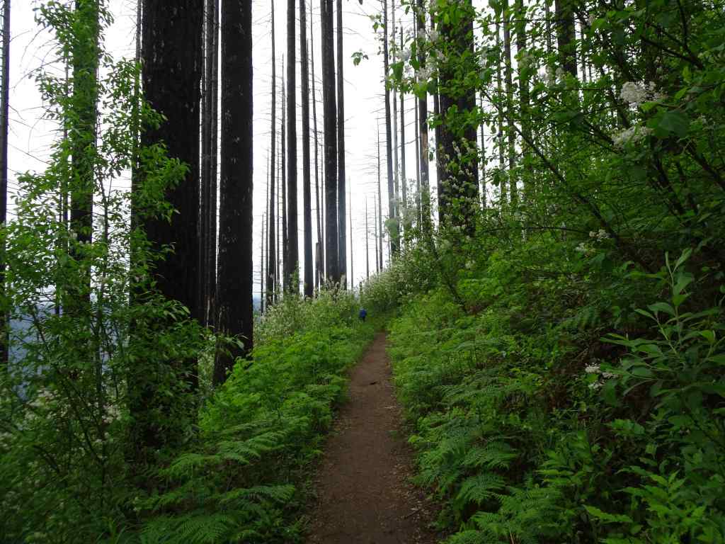 Next, the trail takes us back east toward our parking area. Some of the lower tree stands in this area were very badly burned.