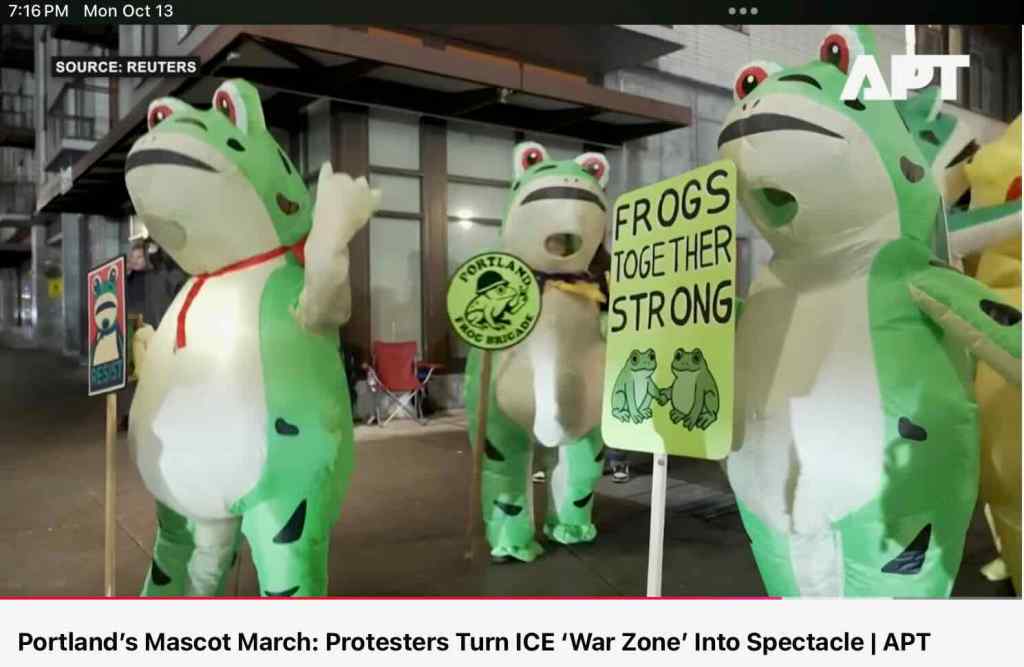 Things started to heat up. Deliberate misinformation reported a ‘war zone’ throughout the city. The only actual activity is near the Federal ICE facility in southwest Portland, where the true spirit of Portland is on display in peaceful protests that defend free speech and due process. I am writing this in October, when things have gotten crazier but in September, we were just getting ready for threatened invasion! I’m sure I will be adding something about the frogs next month.