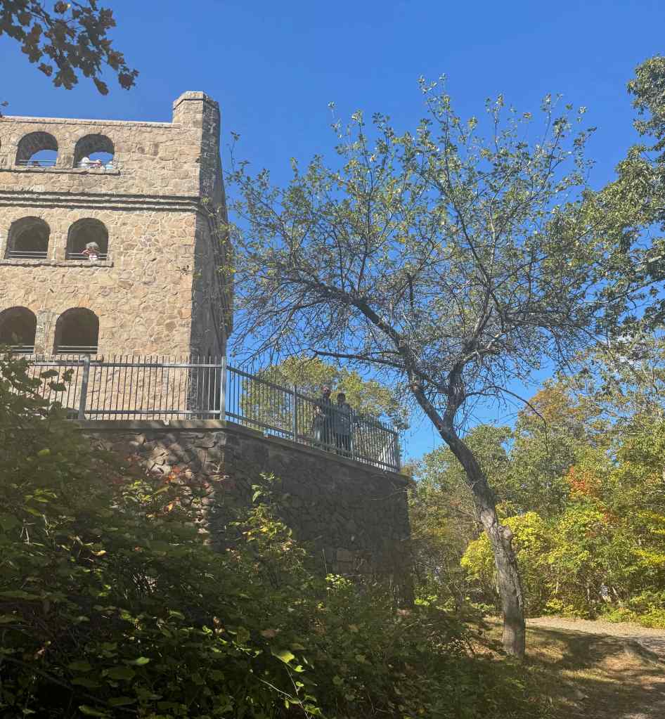 Sleeping GiantTrailhead – the trail is a gently graded gravel road.Wildflowers – asters, silver rod and goldenrod. Sassafras leaves turning orangeAnd the eastern version of poison oak.The tower ahead…The towerView across the parapetsA ‘territorial’ view toward Long Island Sound from the top.History of The Tower and the area.