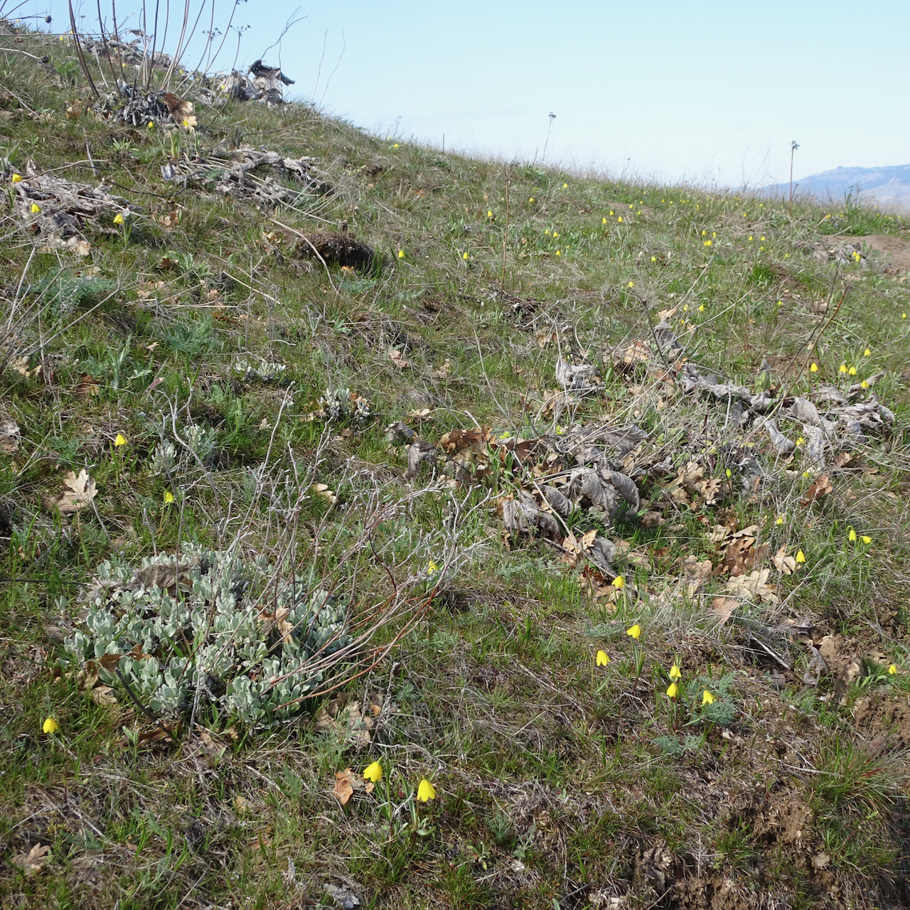 Yellow bells at Tom McCall Point, knitting progress, and neighborhood sights