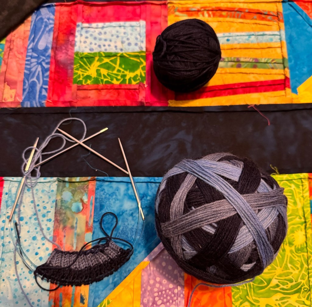 Knitting – I finished a few items – hats for the Puddletown Knitters Guild Service Project, the Mystery Shawl for The Rose City Yarn Crawl Mystery Knitalong, and the most recent pair of socks, and I started a new pair of socks for some upcoming travel knitting…