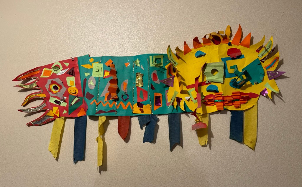While preparing for the plumbing work, I took down this twenty year old dragon from the laundry room wall to keep it out of the dust zone.