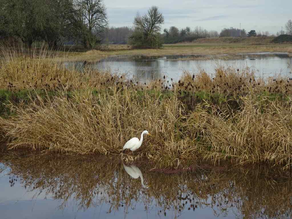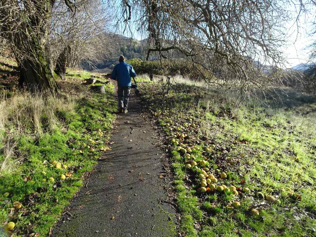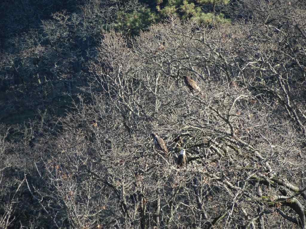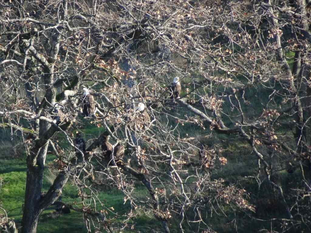 Osage oranges on the trail to the eagle overlook,Lagoon with salmon, ducks, and eagles hiding in the trees. We saw about 20 while watching for a half hour.EaglesEaglesZooming in on the snag in the distance – more eagles.