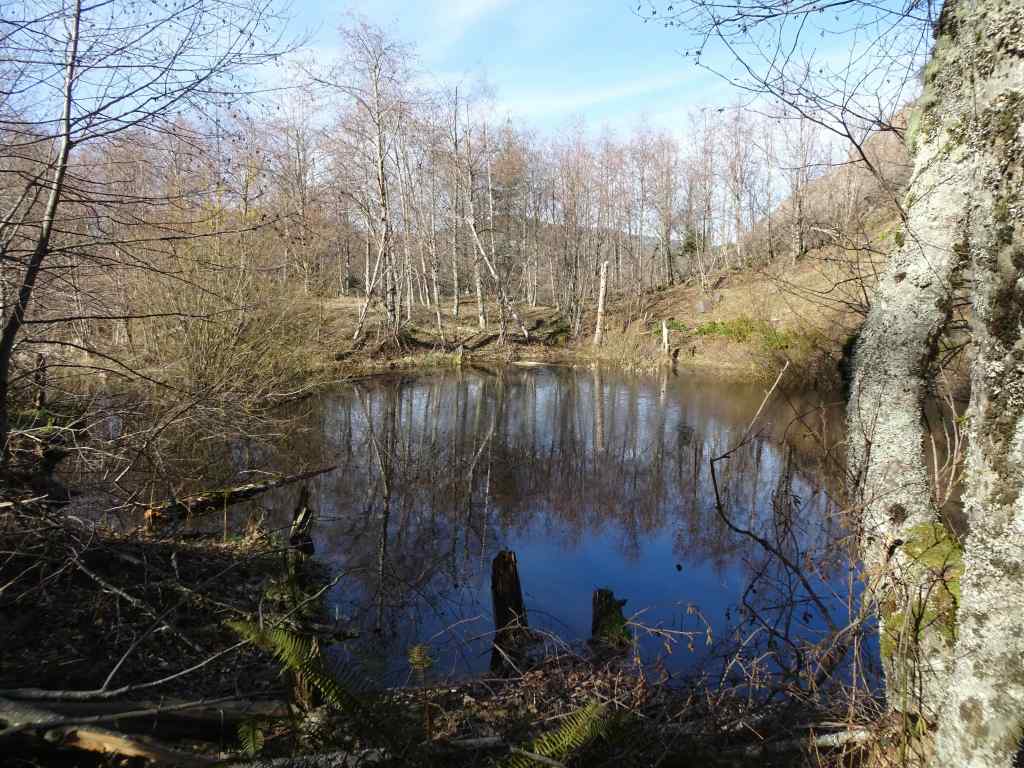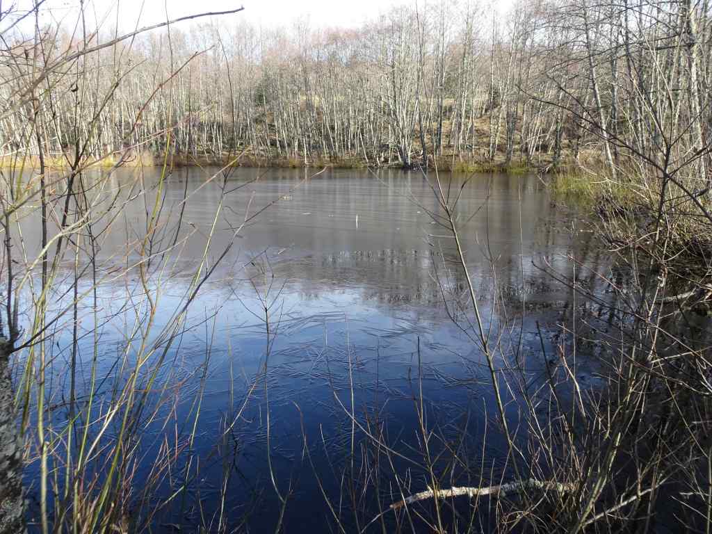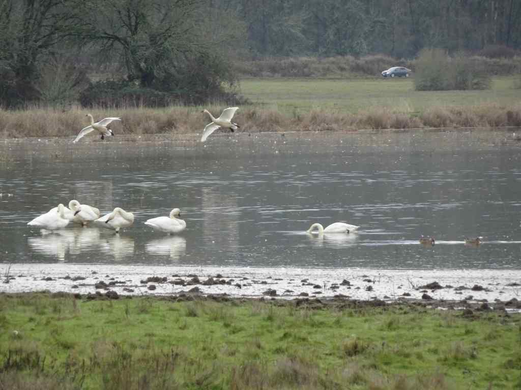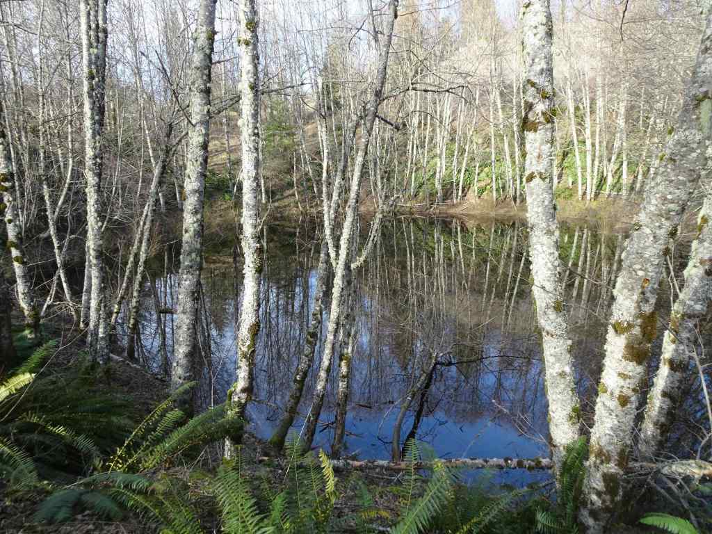 We could see a few bright white spots in the trees as we approached the overlook at the Balfour/Klickitat Reserve.Three bald eagles. We saw about a dozen this day.The pond is icier than it was earlier in the month.