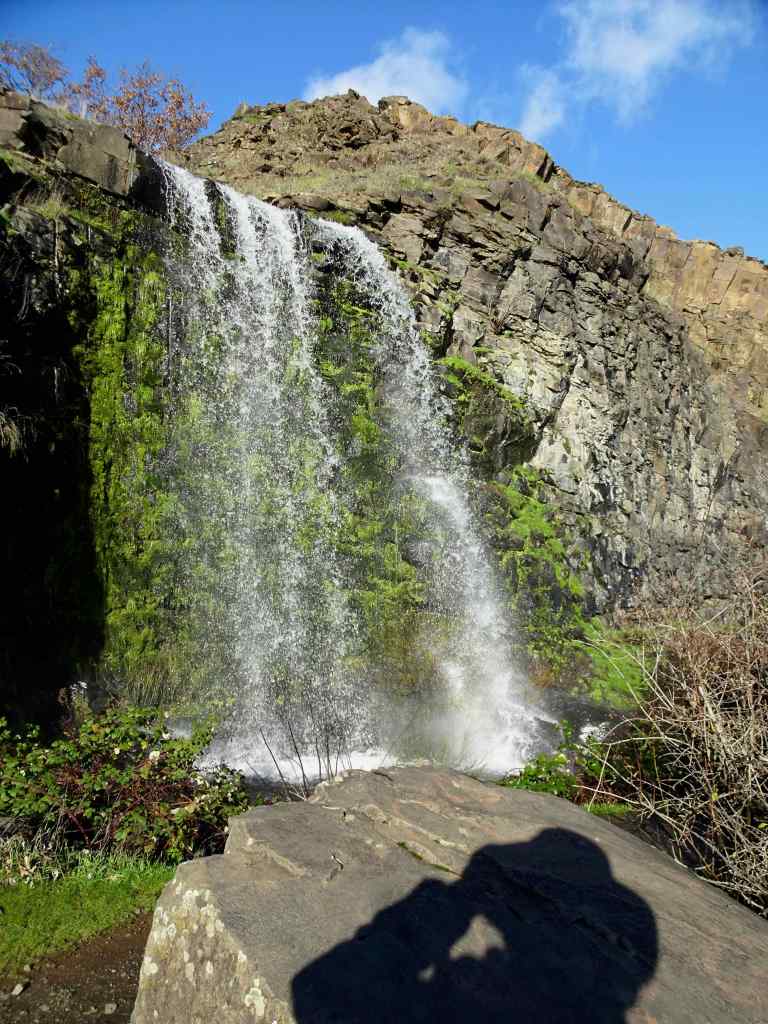 Catherine Creek ADA trailGrass widowBudding Columbia Desert ParsleyWaterfall OverlookWe walked up to the fairy ponds, now frozen around the trunks of slightly burned oak trees,and looked over to the Arch.
