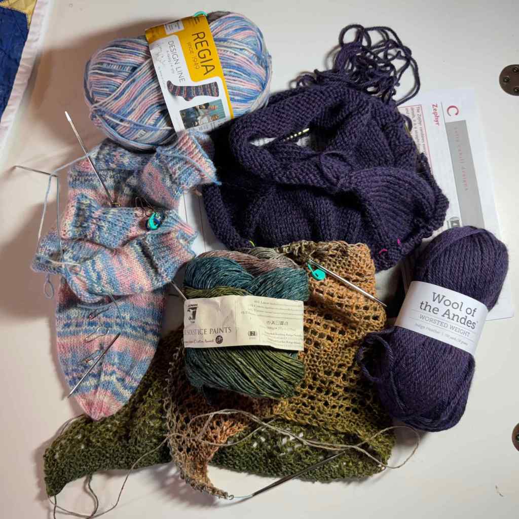 In September we visited an art festival, and went on two hikes in the mountains, and one at the beach. I took my usual neighborhood walks, read a few books, and made very little notable progress on my ongoing knitting projects. At the end of the month, we flew to the east coast to visit family there (next post).