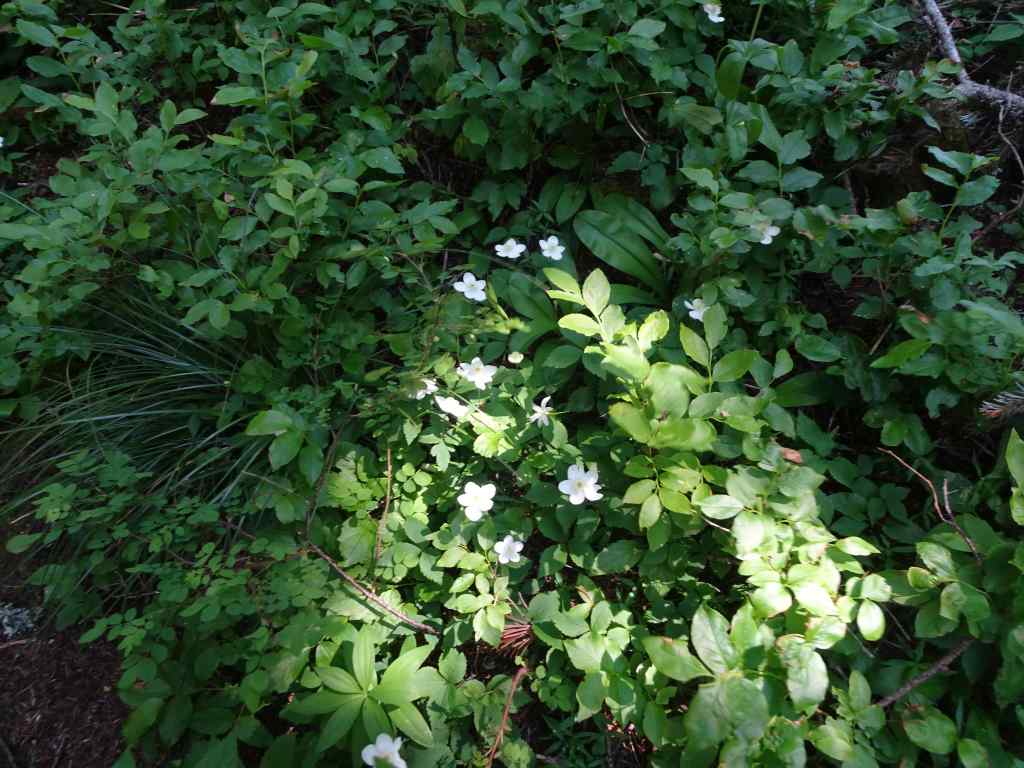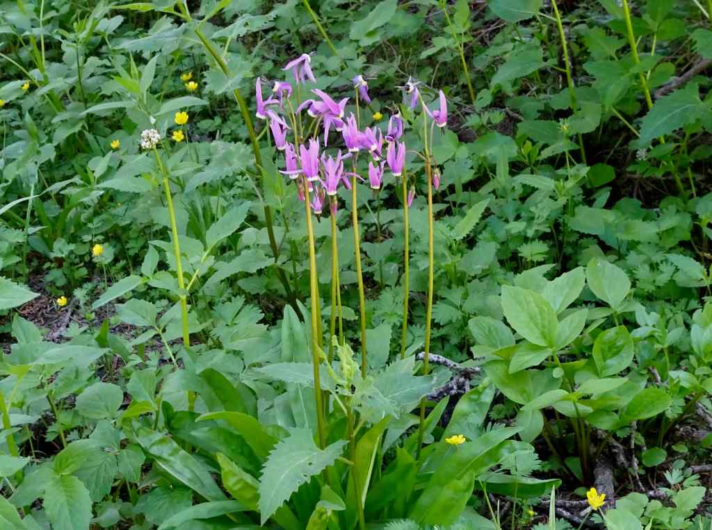 On the downhill trail, we passed through meadows full of sitka valerian, and swampy areas full of shooting stars and buttercups. Once in the forest, the Oregon anemones were sparkling up in abundance.