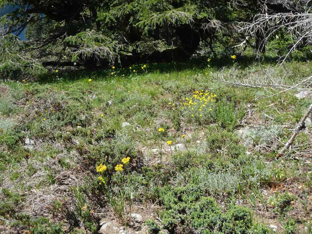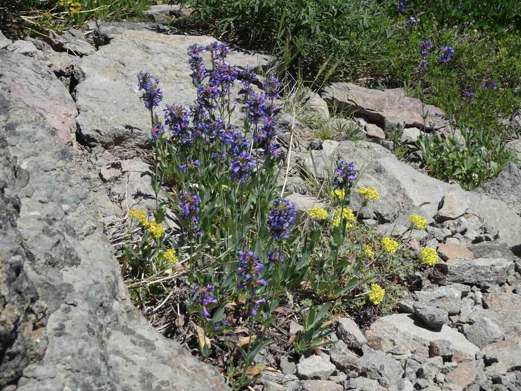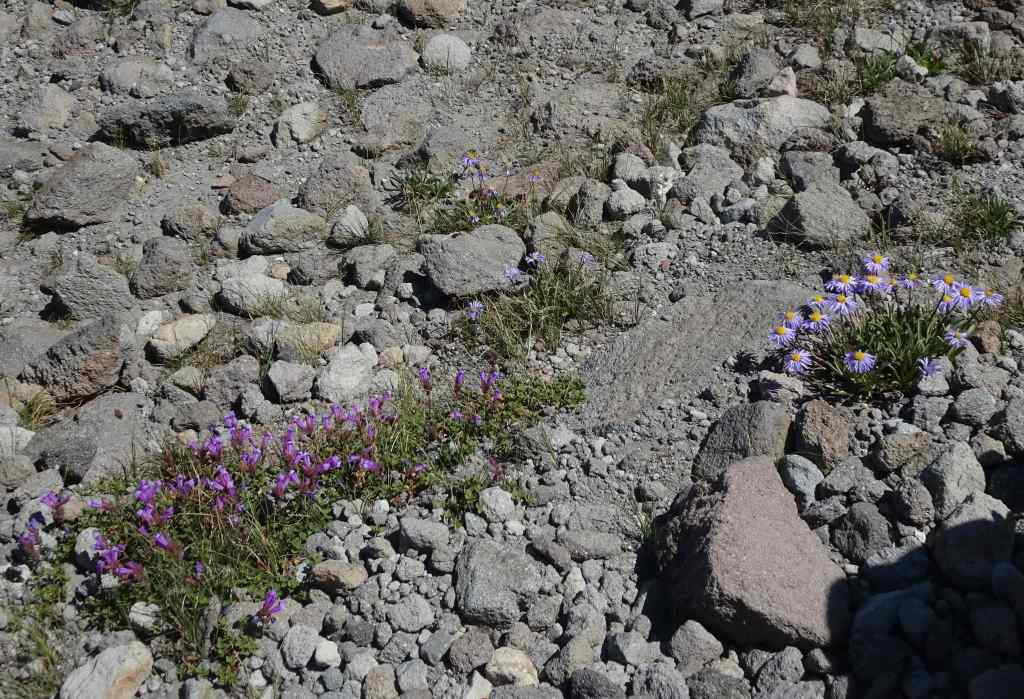Then we retraced our steps, back along the seemingly barren slopes, with lots of subalpine flowers blooming amid the rocks.