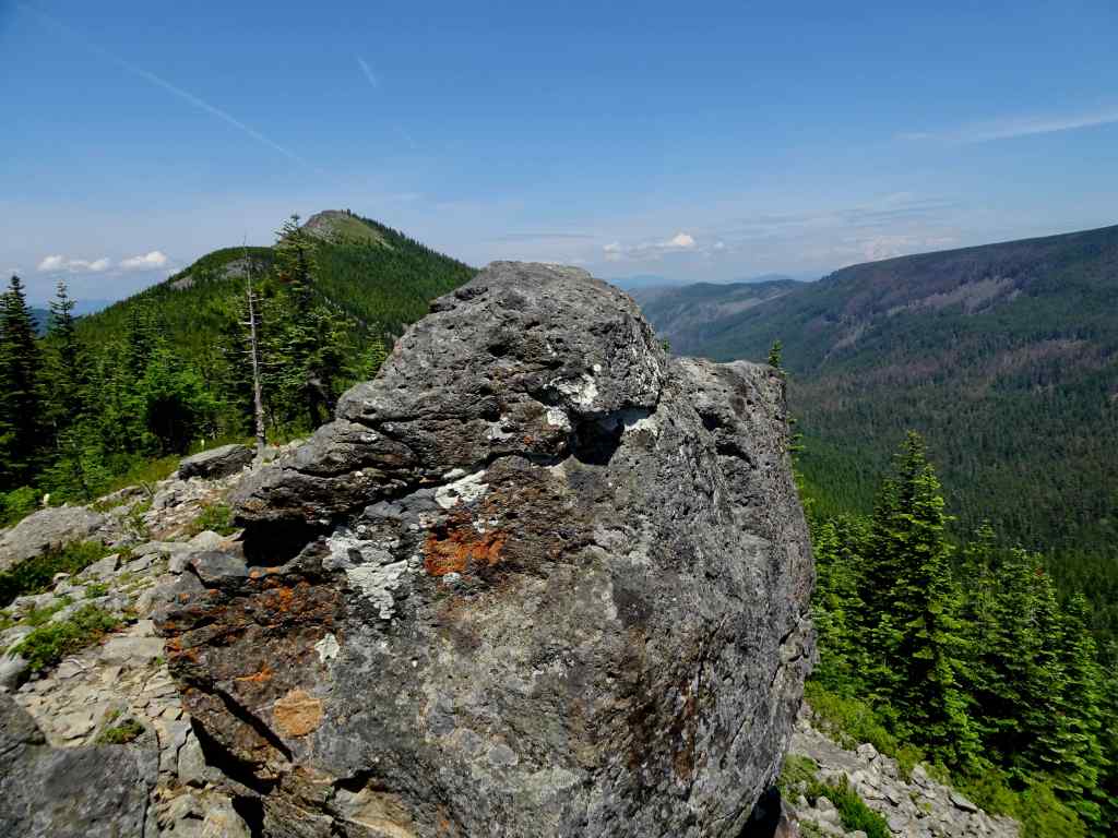 Rocky outcrop, and view to the top of Tomlike Mountain.Glimpse of Mt Adams to the northPenstemon on Tomlike Ridge