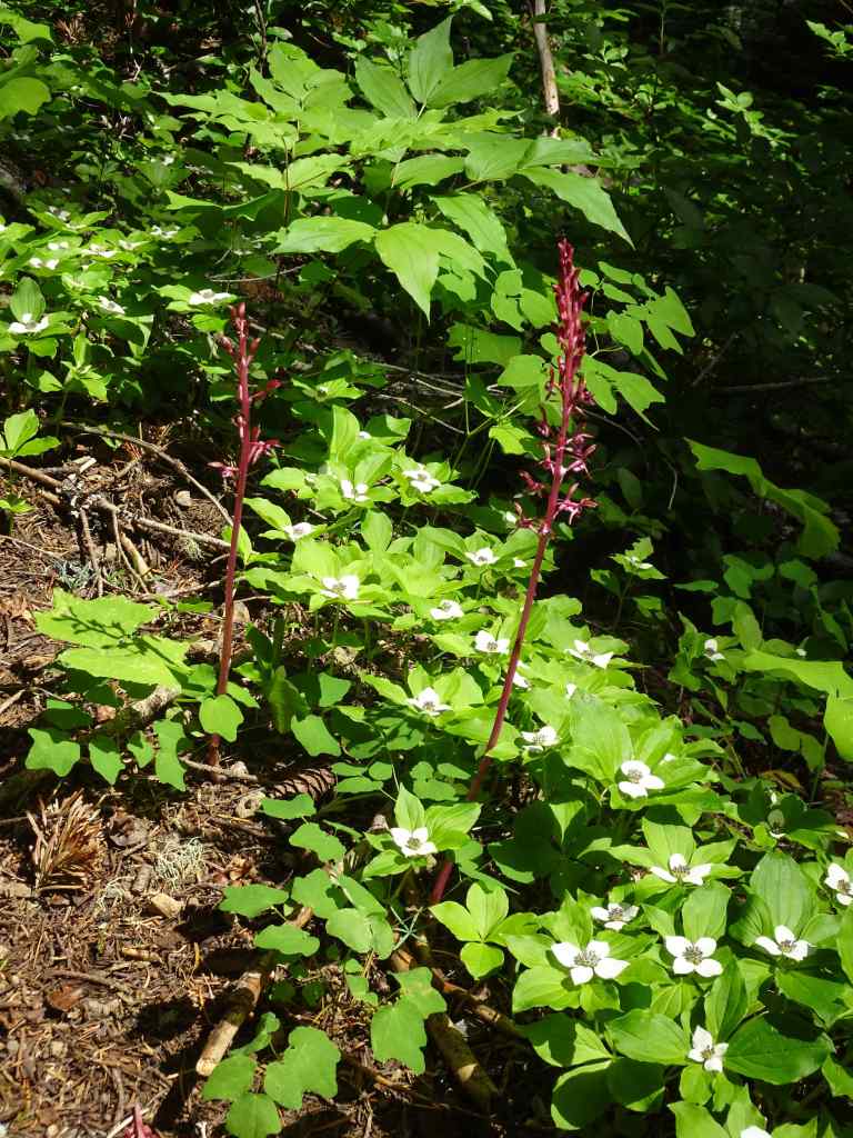 Bunchberry and coral root were prolific along our return trail.