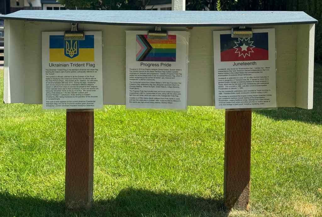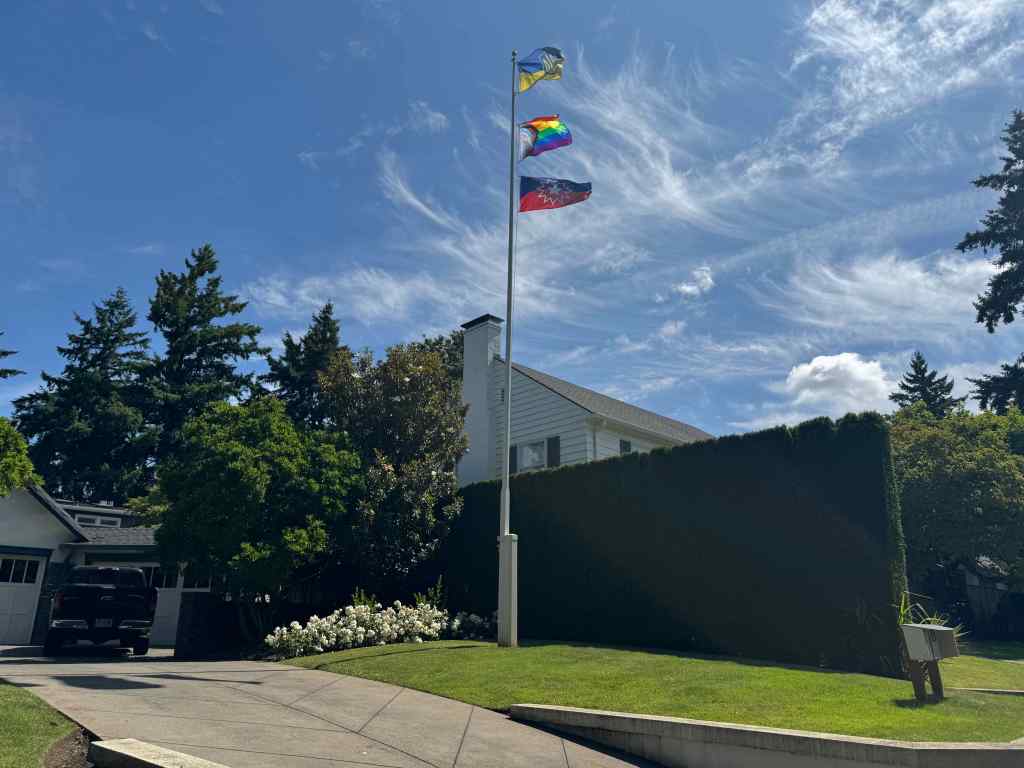 Also up on the ridge today, there is that one house with a flagpole – today they were flying three flags, the Pride flag, the Juneteenth flag, which I had never seen before, and the Ukrainian flag.