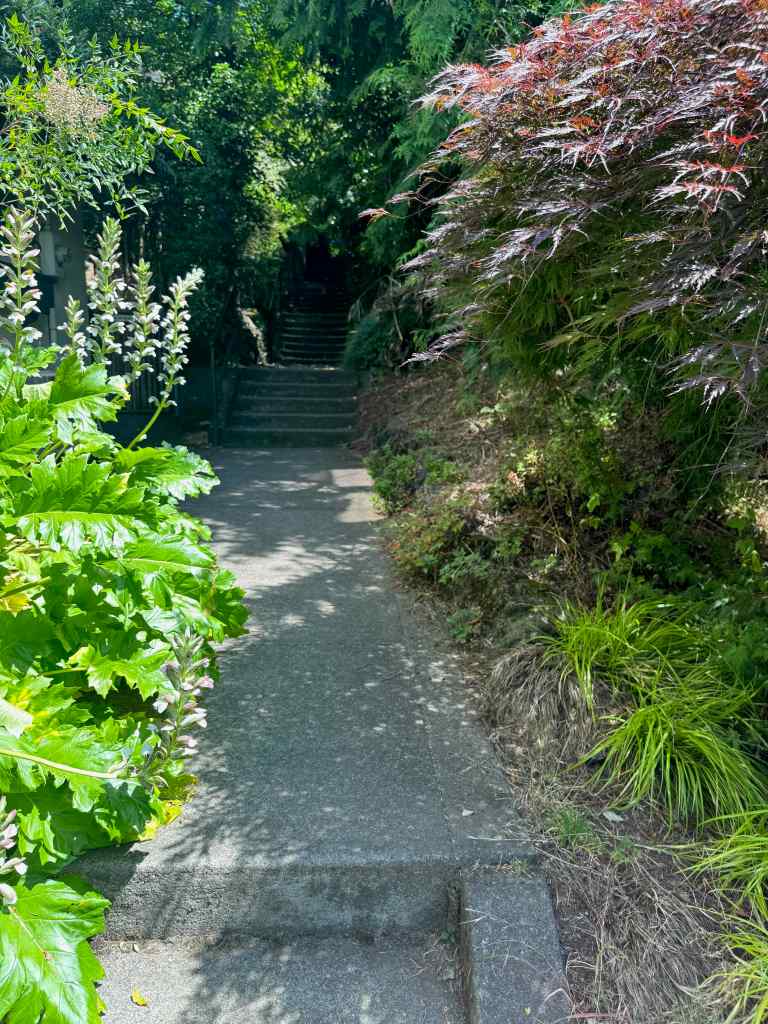 Today I felt I had the energy to walk up to Alameda Ridge and do a few stair repeats. Success! And once again, I am charmed by my neighborhood where I am so lucky to live. Front yards are in bloom and colorful; and today it is only in the mid60s; how lovely to be able to walk outside without being dried and desiccated by the sun. I lived seven years in Tucson, I know dry heat; I knew my survival strategies then. The two weeks of abrupt immersion in the heat and aridity in Utah were exhausting; but now I am recovering. Soon I will be walking in mountains again.
