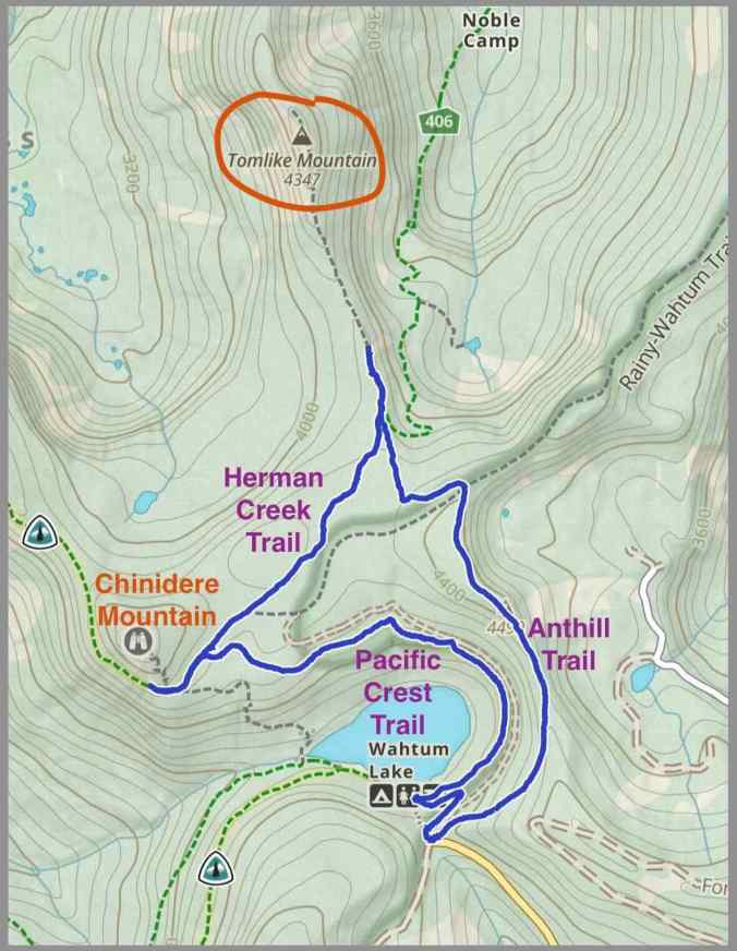 We usually hike to Chinidere Mountain from this trailhead near Wahtum Lake, but I was curious to try the Anthill Trail toward Tomlike Mountain, which is another rocky peak in the area.