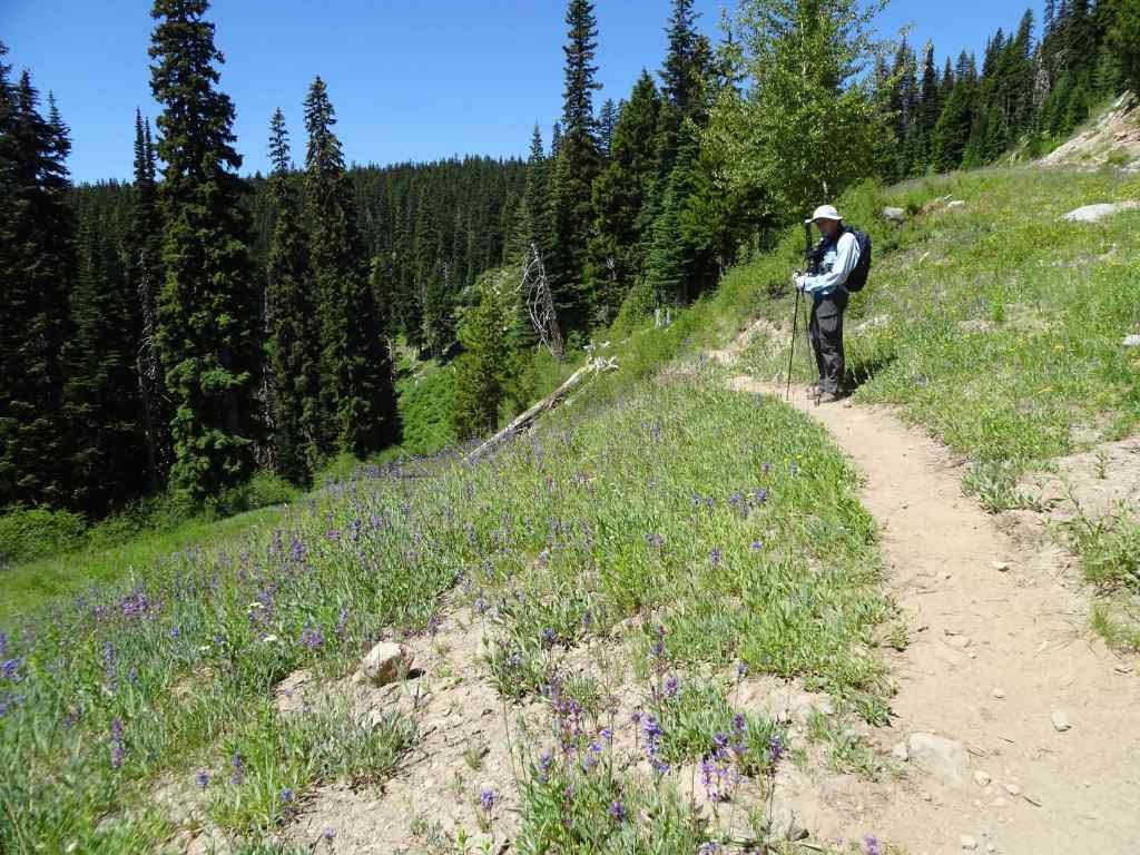 The next week, we hiked the short, sweet (3 miles, 550 feet) loop to Lookout Mountain from High Prairie trailhead. We have done this one many times, and it never gets old! The lower part of the trail crosses a couple of large meadows.
