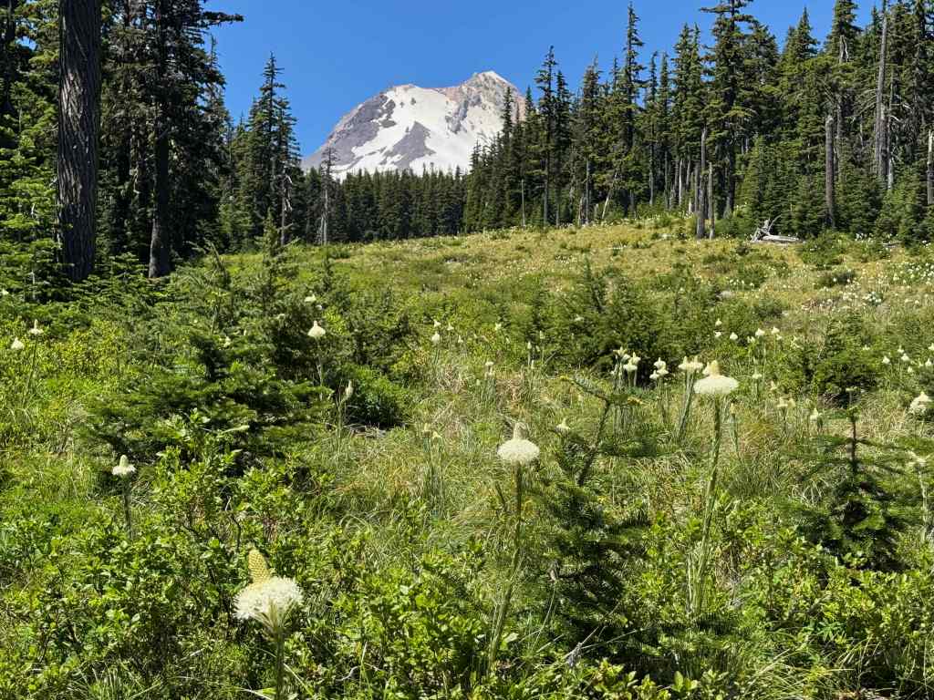 This was a blooming bear grass year in the ski run slopes, with a view of Mt Hood